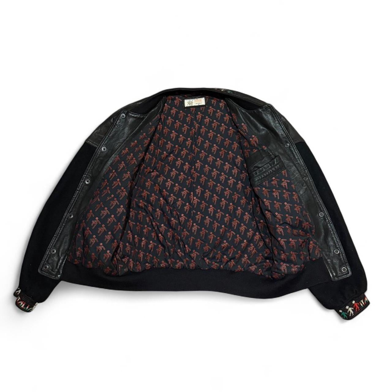 Extremely rare Italia ’90 World Cup jacket with iconic oversized ‘Ciao’ mascot embroidery. Made by Ramin Australia for the ’90 tournament—nearly impossible to find today. Features genuine leather front, wool sleeves, full zip, and lined interior.