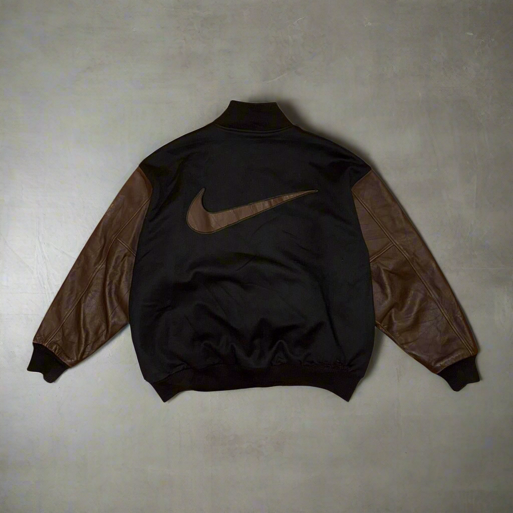 RARE 90s Nike Big Swoosh Leather Varsity Jacket